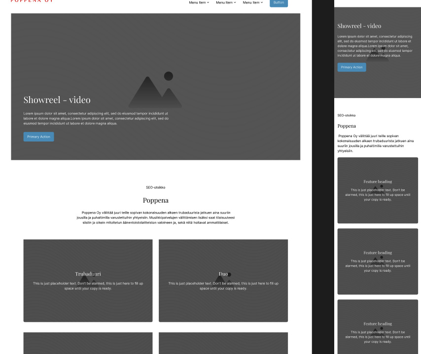Rautalankamallien mukaan tehdyt ulkoasuvedokset. Tarkat kuvat siitä miltä sivut tulevat visuaalisesti näyttämään